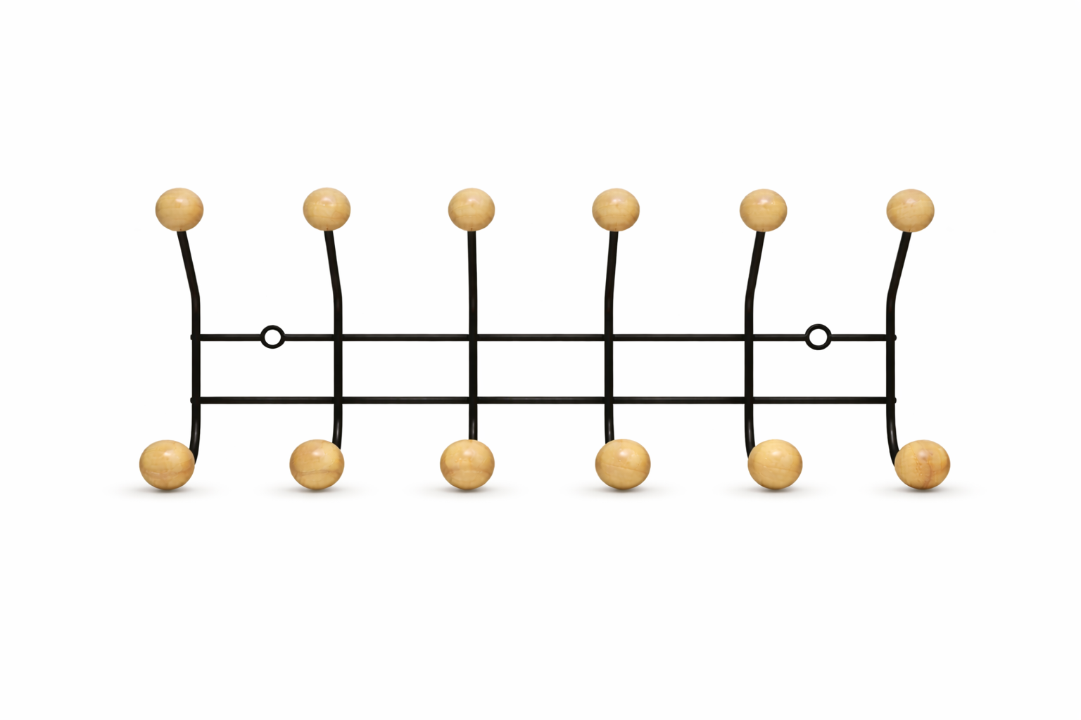מתלה קיר איכותי בעיצוב מודרני בצבע שחור עם כדורי עץ בקצוות.